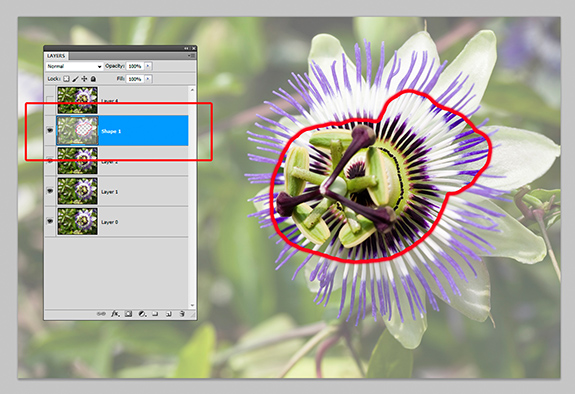 De werkwijze in een fotobewerkingsprogramma is theoretisch eenvoudig, maar praktisch een nauwkeurig werkje. Open de foto waarbij het achterste scherpstelpunt is gekozen. Open nu ook de andere foto’s en kopieer deze in hun geheel in de juiste volgorde als nieuwe laag in de eerst geopende foto, zodat ze exact op elkaar liggen. In het paneel Lagen kunt u zien dat de foto’s als lagen boven elkaar liggen. Tevens kunt u de volgorde eventueel wijzigen door de lagen in dit paneel te verslepen. Kies het Gum-gereedschap en vervolgens kan begonnen worden om onscherpe delen per laag weg te poetsen. Begin met de eerste laag boven de achtergrond, waarbij u de lagen erboven verbergt. Werk zo naar boven toe. Het zal opvallen dat ondanks alle voorbereidingen de grootte van het hoofdonderwerp verschilt. Dit fenomeen treedt vooral bij close-ups en macro’s onvermijdelijk op als het scherpstelpunt wordt verschoven. De lagen moeten dus iets vergroot of verkleind (schalen) worden om exact passend te zijn. Zijn alle lagen met het Gumgreedschap behandeld en zijn ook alle lagen juist geschaald, dan kunnen ze samengevoegd worden met de achtergrond tot één foto en opgeslagen als JPEG.