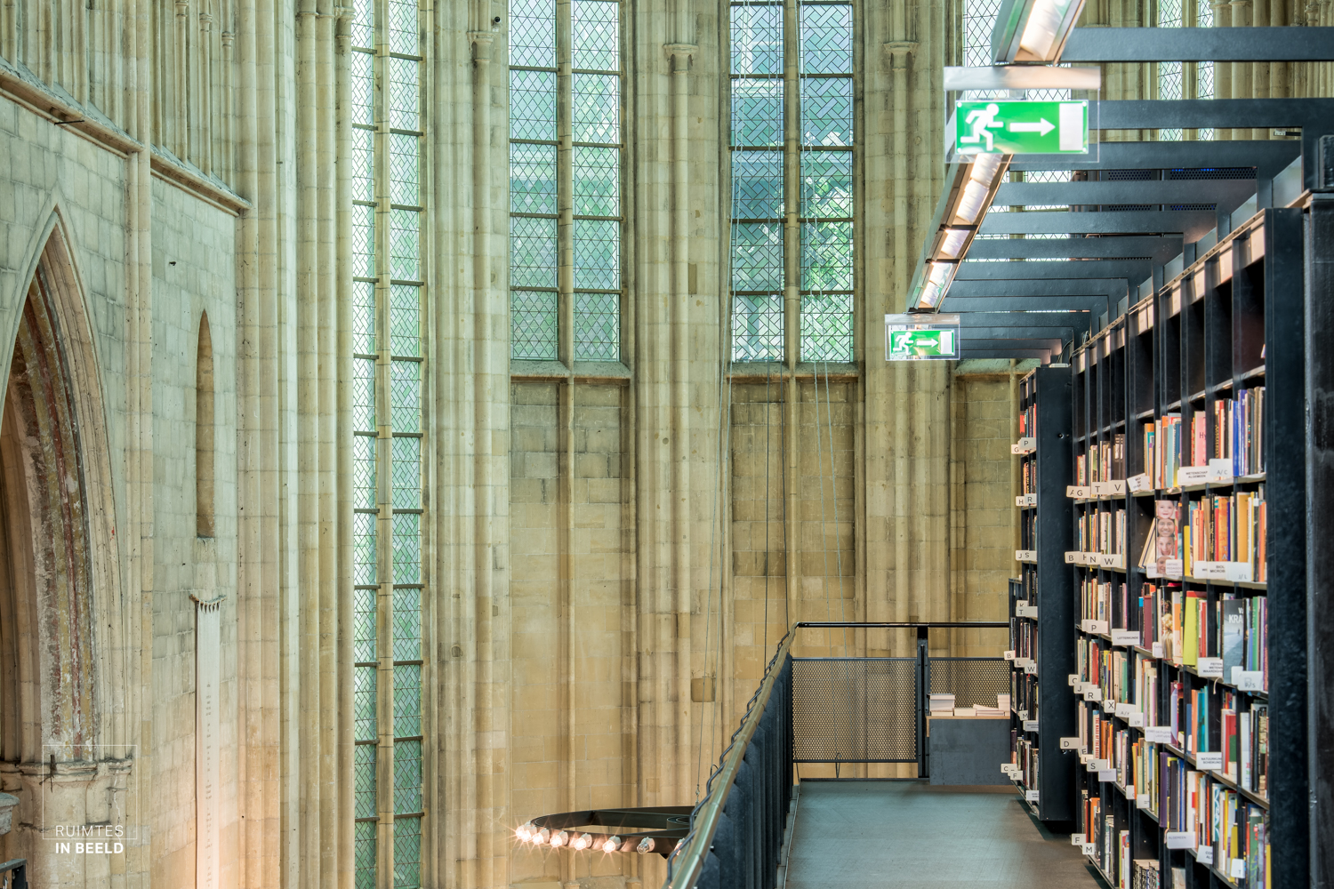 Na mijn blogs over het hergebruik van kerken met kantoren, in de Janskerk en de Annakerk, is het boeiend dat de ruimte nu anders wordt benut: voor een boekhandel. Het architectenbureau Merkx+Girod had, samen met Satijnplus renovatie architecten, een behoorlijke uitdaging. Omvormen van een kerk naar een boekhandel is natuurlijk al niet alledaags. Maar ook was er behoefte aan 1200 m winkeloppervlak terwijl de vloer ‘maar’ 750m was. De architecten zeggen hierover: "De oplossing is een monumentale inloopboekenkast met meerdere verdiepingen, asymmetrisch in de kerk geplaatst. Hierdoor blijft aan de linkerzijde de volledige hoogte van de kerk intact terwijl rechts de mensen naar de bovenste verdieping van deze stalen ‘boekenflat’ worden geleid. Het klimmen is tot een belevenis gemaakt."