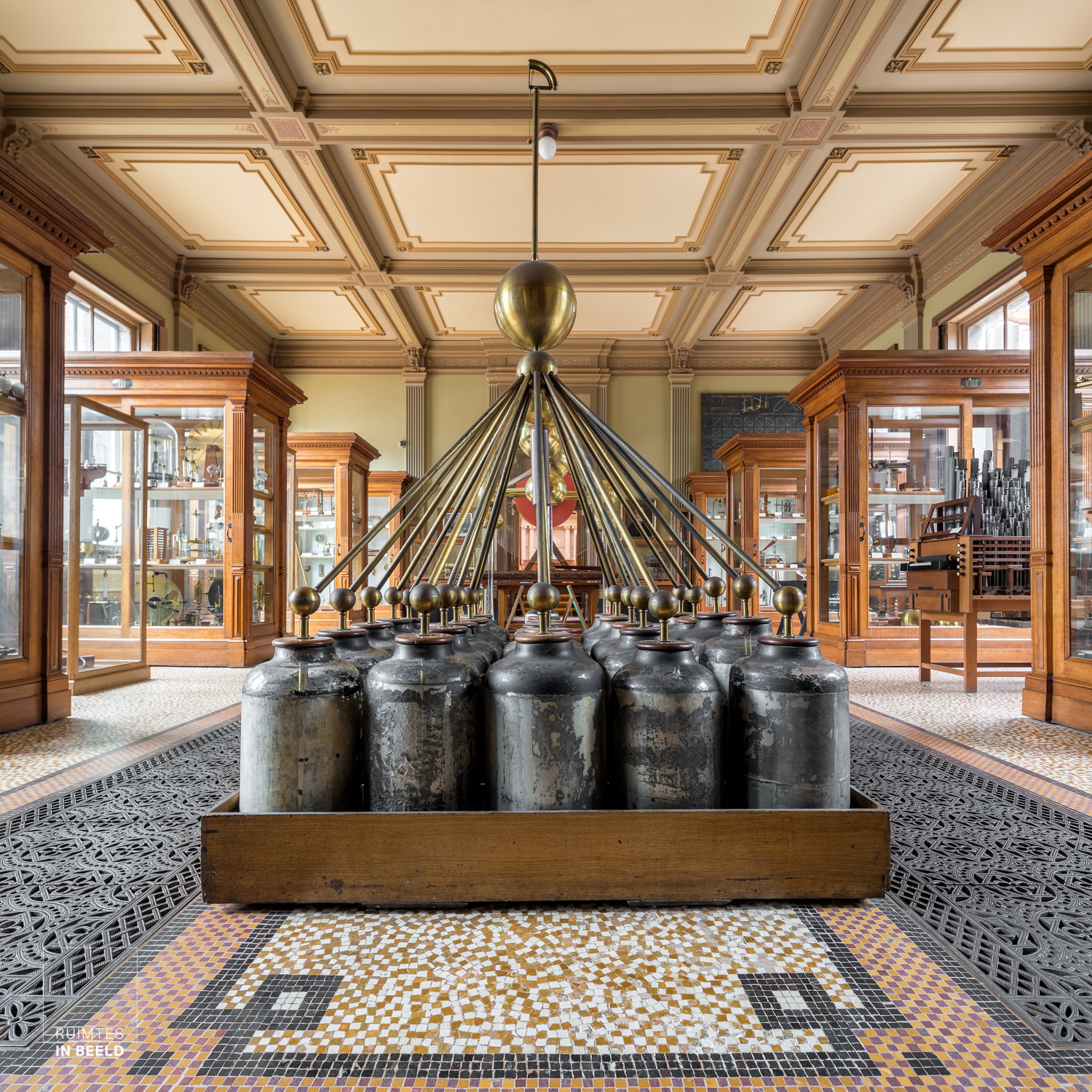 Het moet heerlijk zijn om in alle rust door de instrumentenzalen rond te dwalen en meer te komen weten over de objecten die er zijn tentoongesteld. Je kunt hier ronddraaien in de zaal. Onderstaande foto toont op de voorgrond de Grote Elektriseermachine met Leidse flessen, de grootste vlakke-plaat-elektriseermachine ter wereld en gebouwd in 1784.