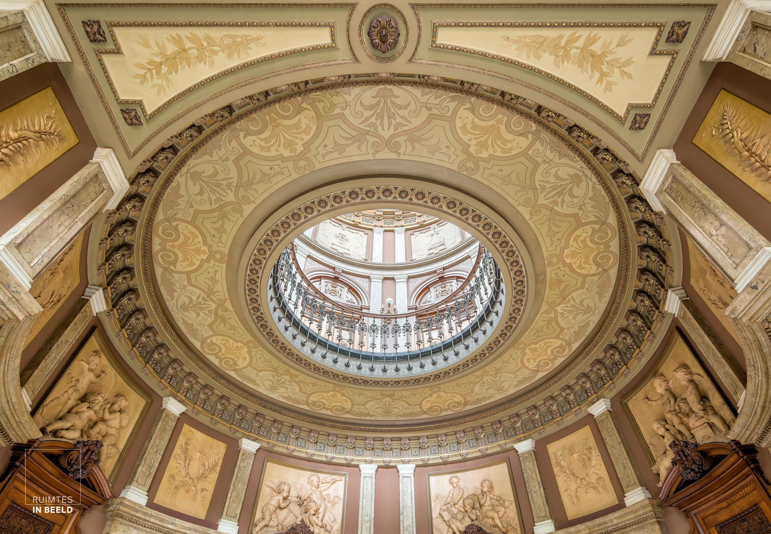 Trouwe lezers van mijn blog weten het al: bij dit soort ruimtes moet je omhoog kijken. Dan zie je dit in de ontvangsthal van het Museum.
