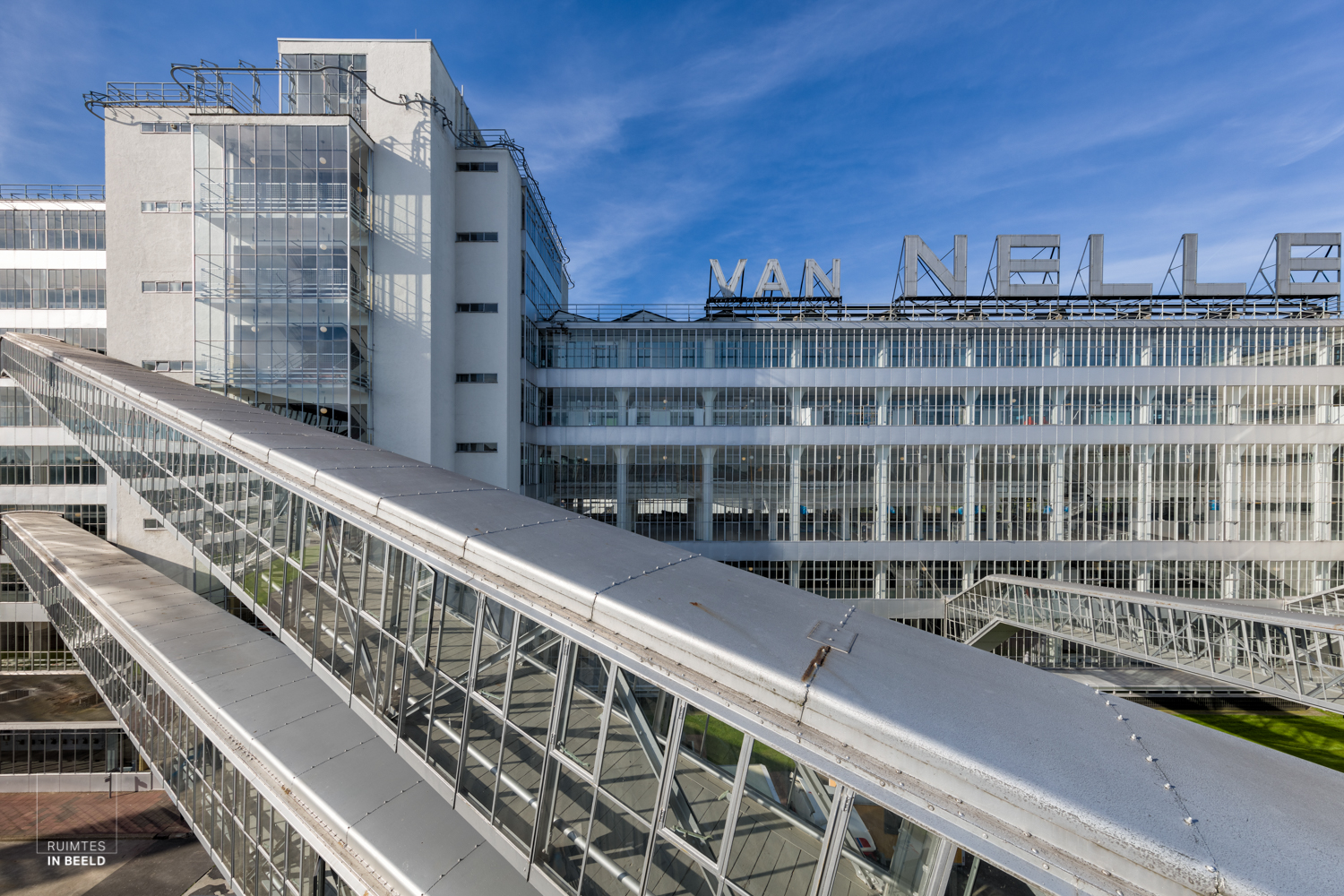 De Van Nelle Fabriek is gebouwd in de stijl van “Het Nieuwe Bouwen”. Die kenmerkte zich door rechte lijnen, geometrische en abstracte vormen, lichte constructies van staal en beton, grote ramen, en een open ruimtes. Een feest voor de architectuurfotograaf! Maar dat was natuurlijk nooit de drijfveer van het ontwerp. De fabriek moest een feest worden om in te werken. De ruimtes die ontstonden boden veel licht en lucht, en droegen op die manier bij aan de arbeidsomstandigheden van de werknemers. Vanaf 1931 werden er koffie, thee en tabak geproduceerd, en later ook instantpudding en kauwgum (de beroemde Chiclets). Tot 1995 kwam het aroma je hier tegemoet, maar daarna zwegen de machines. In 1998 nam een groepinvesteerders het initiatief voor een ambitieuze renovatie. Naar ontwerp van architectenbureau Wessel de Jonge is de fabriek in 2000-2004 verbouwd tot een bedrijfsverzamelgebouw voor de creatieve sector. De toenmalige minister van Onderwijs en Cultuur, Jet Bussemaker: “Dit prachtige gebouw is een voorbeeld van hoe monumenten bewaard en levend gehouden kunnen worden voor de volgende generaties. Aan het gebouw zijn de nodige aanpassingen gedaan, maar de geest van weleer leeft in alle opzichten voort.”