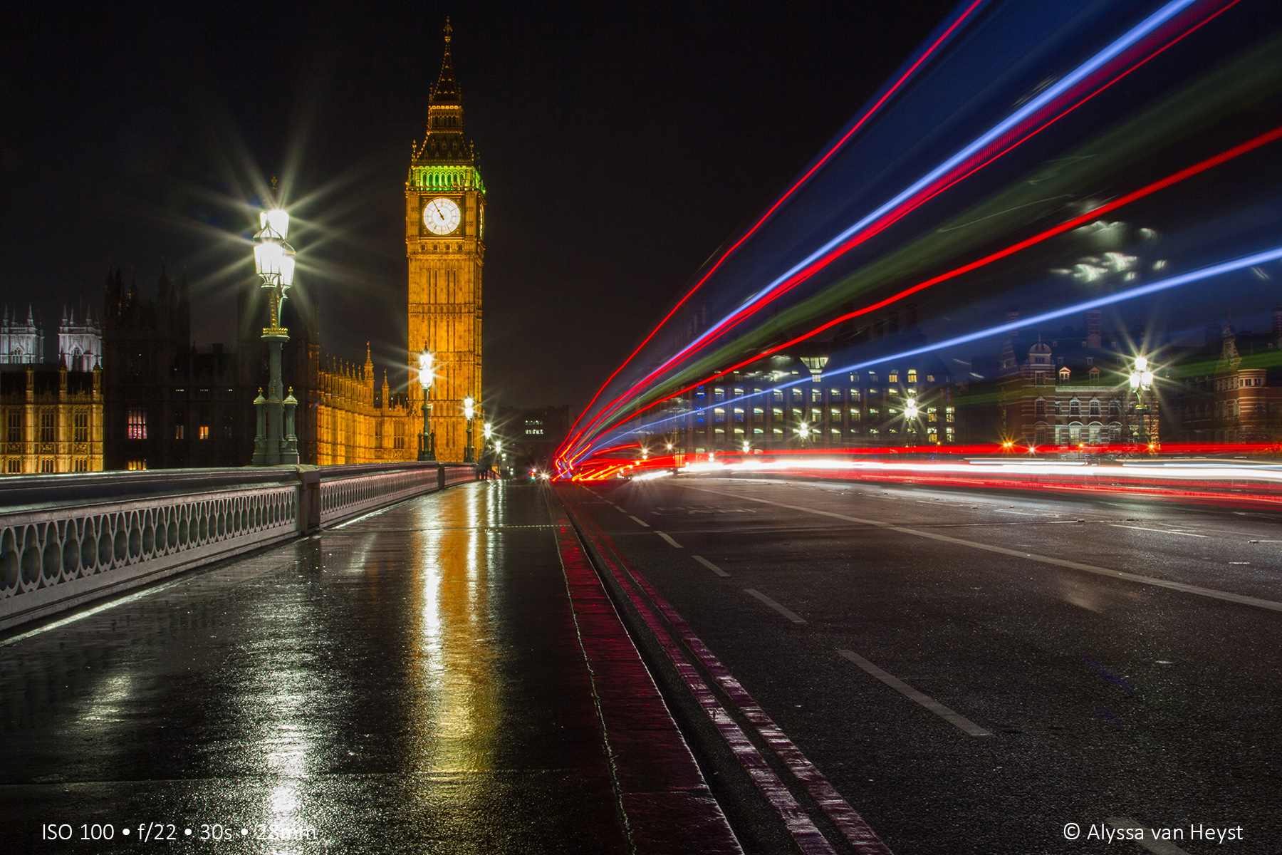 Dan de laatste foto van de Big Ben in Londen. Zoals je kunt zien had het net geregend en was de weg nat. Het was moeilijk om zo dicht langs de weg te staan, zonder spetters van voorbijrazende dubbeldekkers en auto’s op mijn lens te krijgen. Heb een aantal dezelfde foto’s gemaakt, waarvan dit de enige was zonder spetters op de foto. Vandaar dat het lensdoekje altijd meegaat :-)