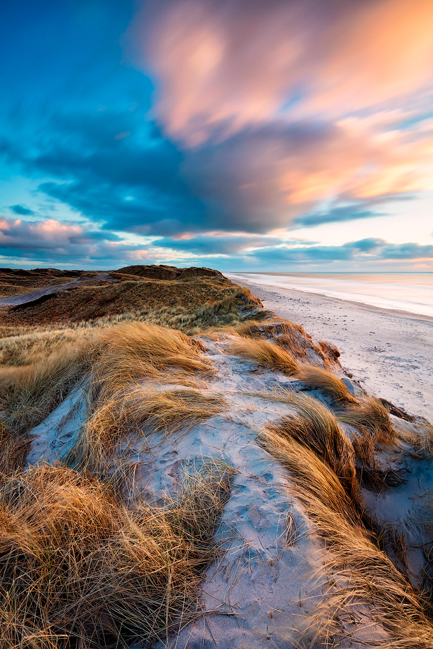 Ik weet dat het er hier in de zomer heel anders uit kan zien. Dan wemelt het ongetwijfeld weer van de toeristen en nemen de wind- en kitesurfers het strand en de fjord weer over. Maar nu heb ik alles voor mezelf. Gedurende de hele week komen we geen andere fotograaf tegen. Geen statieven op het strand, in de duinen of aan de fjord gezien. Niets dan leegte en weidsheid. Precies zoals ik het graag wil hebben. De Noordzeekust van Jutland is nog net zo mooi als ik me herinner. Zeker in deze tijd van het jaar. Een verlaten kustlijn met mooi licht en een koude wind in je gezicht.