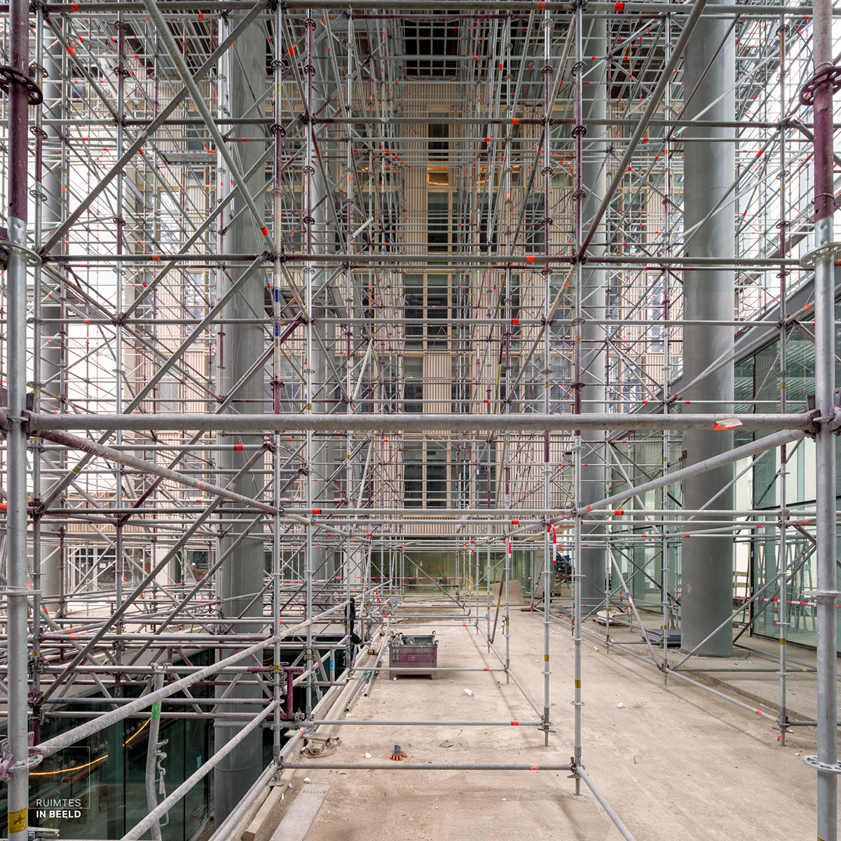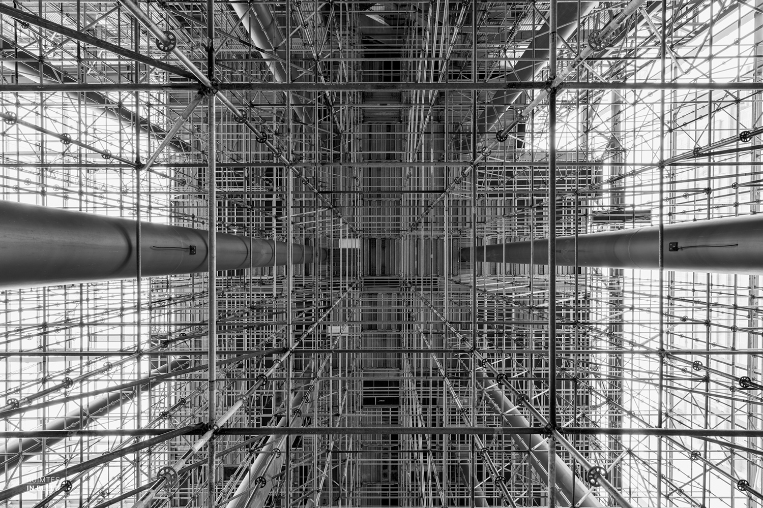 Maar waar het echt leuk wordt, is als je met een foto-oog onderwerpen ziet waaraan de meeste mensen straal voorbij zouden lopen. Op weg naar de ruimte van foto 1 zag ik een bouwput waarin een soort kathedraal van steigers was gebouwd. Ik mocht me van mijn begeleiders daar gaan uitleven. Onderstaande foto’s zijn het resultaat. Het is echt een kick om unieke beelden te maken van onderwerpen die mensen niet eerder op die manier hebben bekeken. Als vrijetijdsfotograaf heb je dat soms ook wel, en de voldoening die je daaruit haalt, is vaak voldoende om de uitgaven voor de foto-apparatuur te verantwoorden (-:). Nu ik, sinds begin 2015, fulltime als professioneel architectuurfotograaf werk, heb ik zulke momenten veel vaker: mijn werk is mooie dingen maken. Prachtig toch?