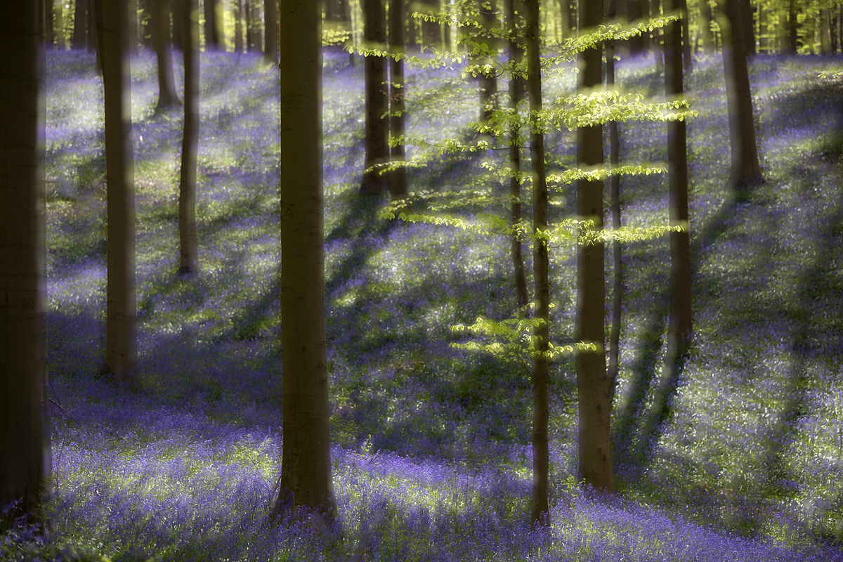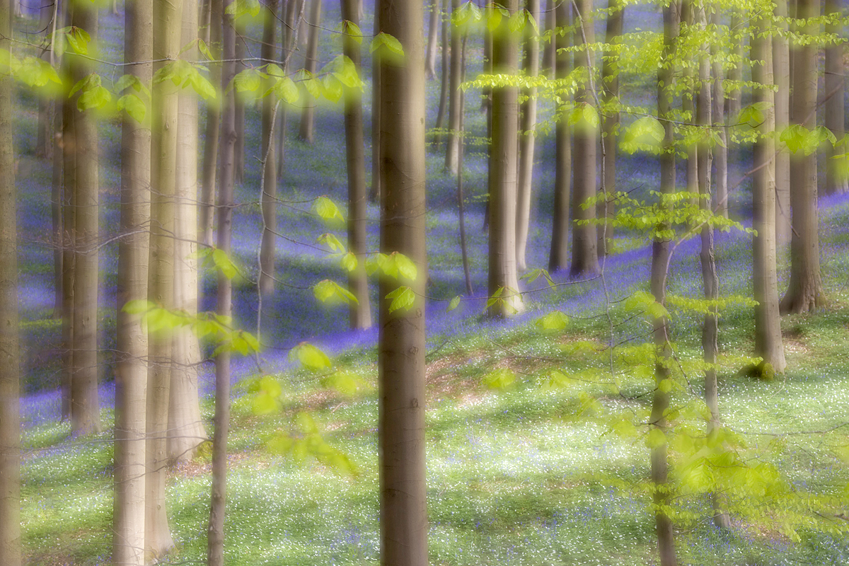 Al behoorlijk wat jaartjes ga ik eind april naar het Hallerbos onder Brussel en ondanks deze herhaling voel ik me nog steeds als een kind in een speeltuin als ik daar rondloop. Waar ga ik starten…, wat kan ik allemaal fotograferen…, zie ik misschien iets nieuws…, etc, etc. Dit jaar was ik met twee masterclass groepen en ook nog een lange middag voor mezelf. Het was, mede door de werkzaamheden op de wegen rond het Hallerbos, dit jaar rustig in het bos en de mooiste momenten waren misschien wel de avonden waarop we door een verlaten en windstil bos terugliepen met de zoete geur van de boshyacinten om ons heen! Hoe mooi wil je het hebben! Die rust staat overigens wel in schril contrast met de drukte op de weg naar Halle via Antwerpen en Brussel…
